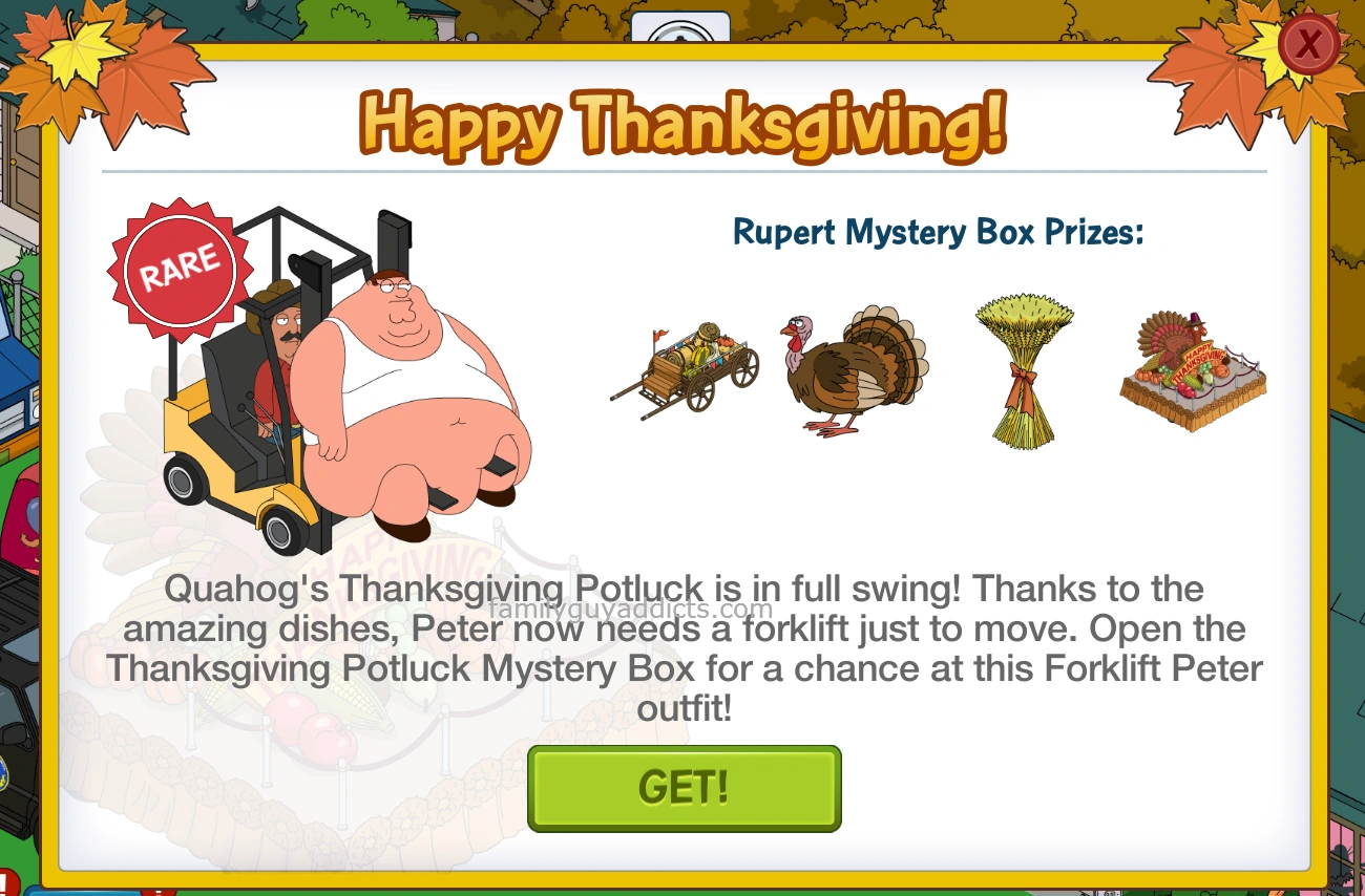 Showing all 2 items Jump to. Similarly named festival holidays occur in Germany and Japan. In some cities and towns. Thanksgiving 2014 is a Timed Quest in which the player has 192 hours to build and upgrade a total of 3 fixed buildings with assets leading up to American History related rewards.